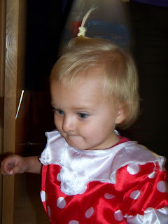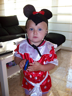 Cualquier parecido con Minnie desaparece, y la convertimos en un payasete. (Al final la llevamos con la capucha e instrucciones de que se la quitaran si le molestaba).